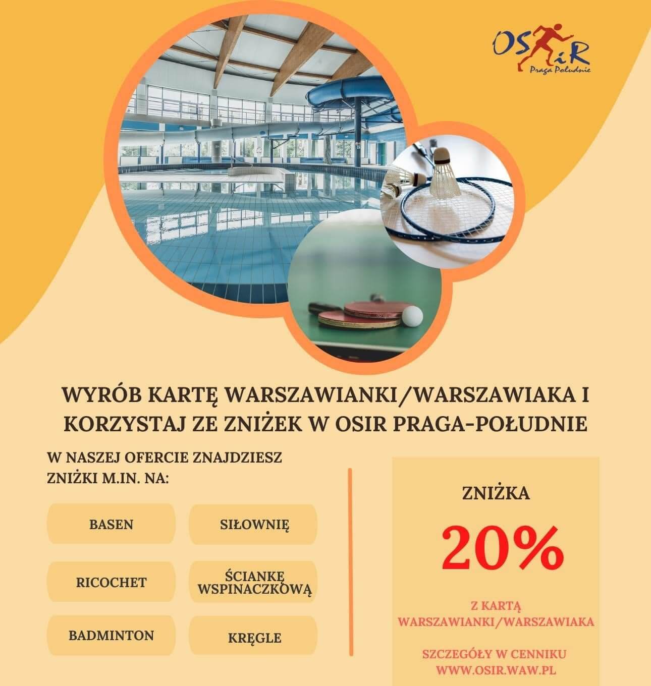 Przypominamy o zniżkach w wysokości 20% na wybrane usługi w OSiR Praga-Południe! Jest to możliwe i proste!