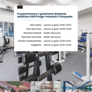 Przypominamy o godzinach działania obiektów OSiR Praga-Południe w dniu 11 listopada