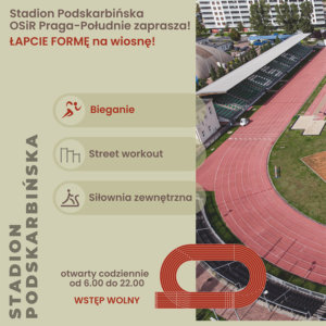 Bieganie to świetny sposób na poprawę formy! Zapraszamy na Stadion Podskarbińska OSiR Praga-Południe w godzinach od 6.00 do 22.00.