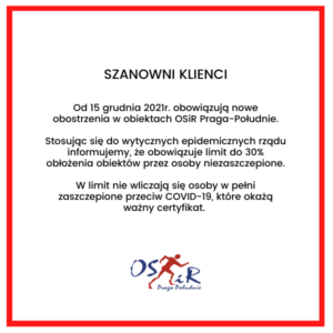Informujemy o zasadach działania obiektów OSiR Praga-Południe 6 stycznia 2022r. (w Trzech Króli).