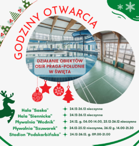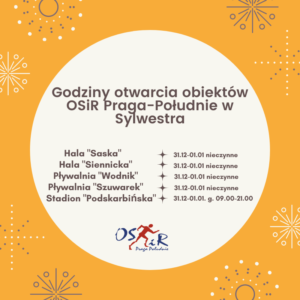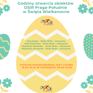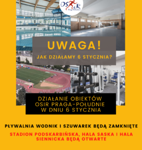 W dniu 8 czerwca Stadion “Podskarbińska” jest czynny w godzinach 6.00-22.00, a Pływalnia “Wodnik” w godzinach 8.00-20.00. Pozostałe obiekty w tym dniu są nieczynne.