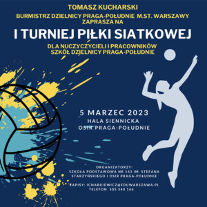 5 marca 2023 roku odbędzie się Turniej Piłki Siatkowej dla Nauczycieli i Pracowników Dzielnicy Praga- Południe w Hali Siennicka OSiR Praga-Południe.