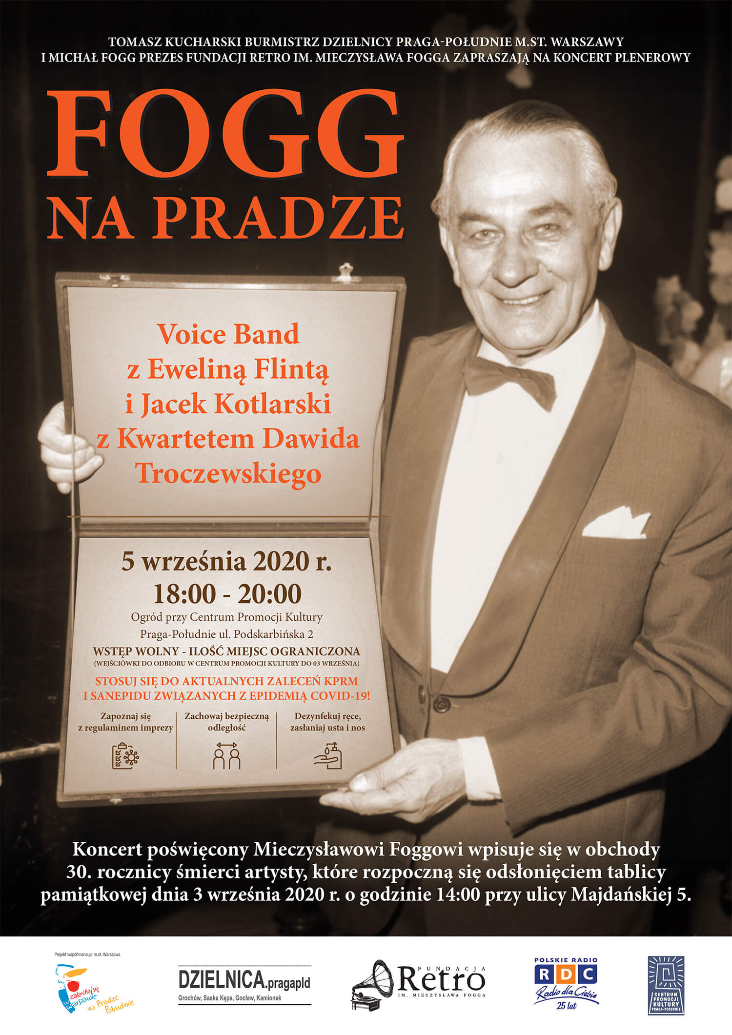 Tomasz Kucharski, burmistrz dzielnicy Praga-Południe m.st Warszawy, i Michał Fogg, prezes Fundacji Retro im. Mieczysława Fogga, zapraszają na koncert plenerowy “Fogg na Pradze”.