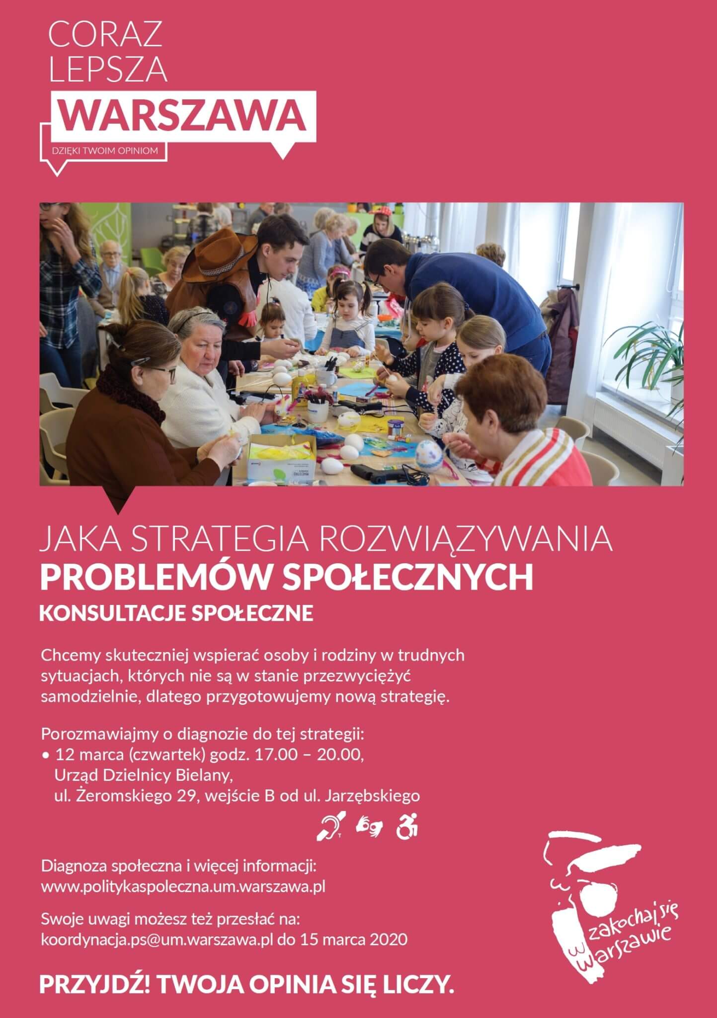 Diagnoza społeczna i więcej informacji: www.politykaspoleczna.um.warszawa.pl. Swoje uwagi możesz przesłać na: koordynacja.ps@um.warszawa.pl do 15 marca 2020.