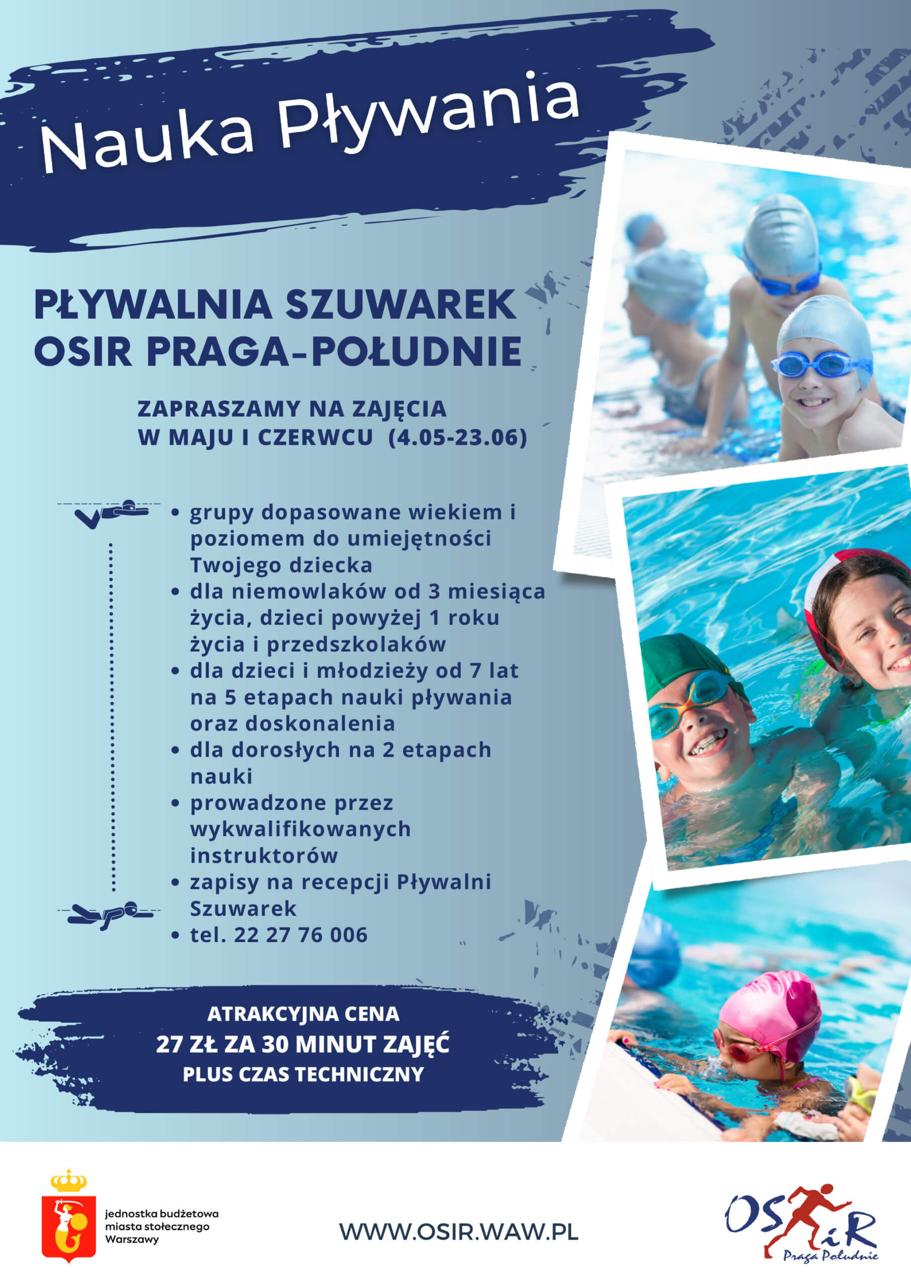 Kontynuacja zajęć z nauki pływania na Pływalni „Szuwarek” OSiR Praga-Południe już od 4 maja 2023 r.