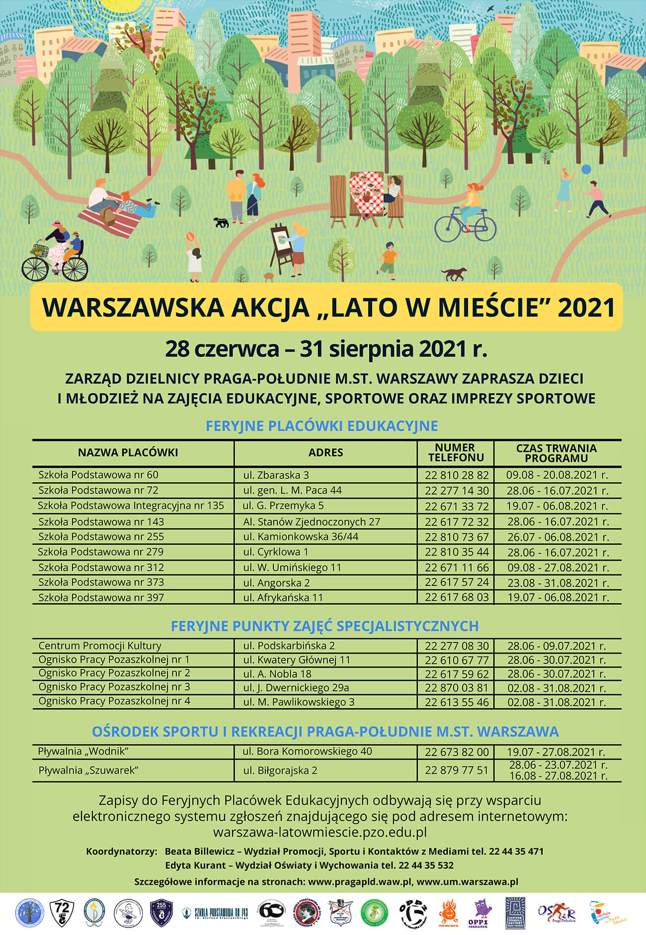 Jak co roku obiekty Ośrodka Sportu i Rekreacji Praga-Południe gościć będą dzieci i młodzież z naszego miasta, uczestniczącą w zajęciach w ramach Warszawskiej Akcji „Lato w mieście”.