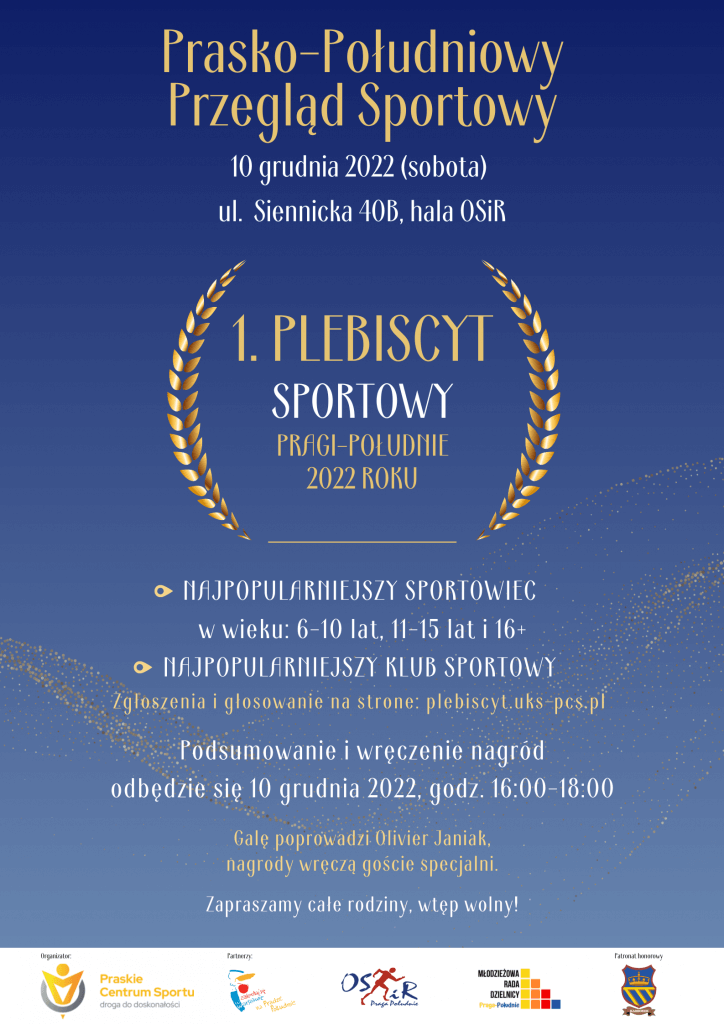 W dniach 22-30 listopada zostanie otwarte głosowanie. Wygrywa osoba z największą liczbą oddanych osób, a uroczyste podsumowanie odbędzie się podczas Prasko-Południowego Przeglądu Sportowego, 10 grudnia godz. 16:00, w Hali Siennicka OSiR Praga-Południe, przy ul. Siennickiej 40b. Szczegóły są opisane na grafikach.