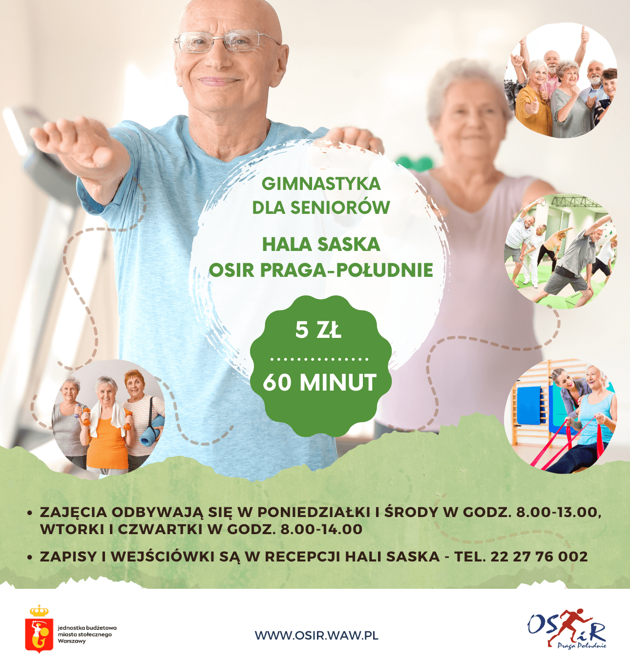 Wychodząc naprzeciw oczekiwaniom i potrzebom seniorów kontynuujemy w Hali „Saska” OSiR Praga-Południe zajęcia z gimnastyki dla seniorów. Zajęcia będą prowadzone w miesiącach maj-czerwiec: