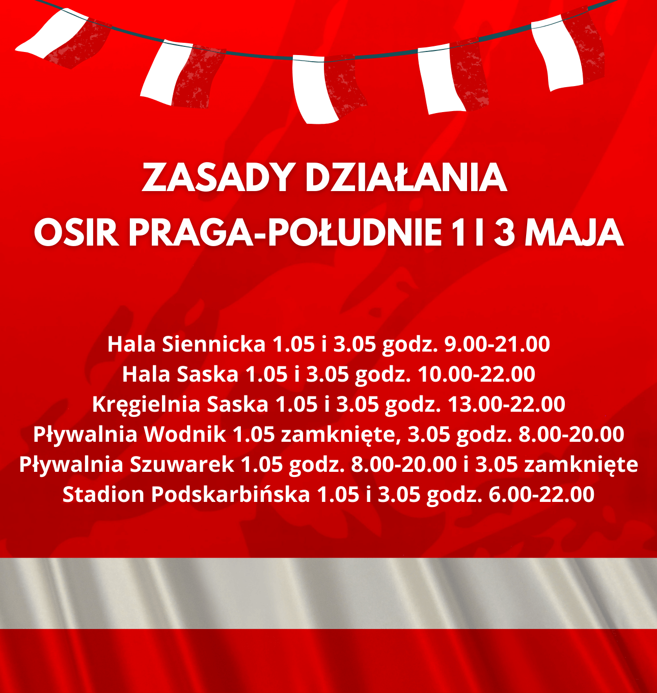 - Hala “Saska” 1.05 i 3.05 godz. 10.00-22.00