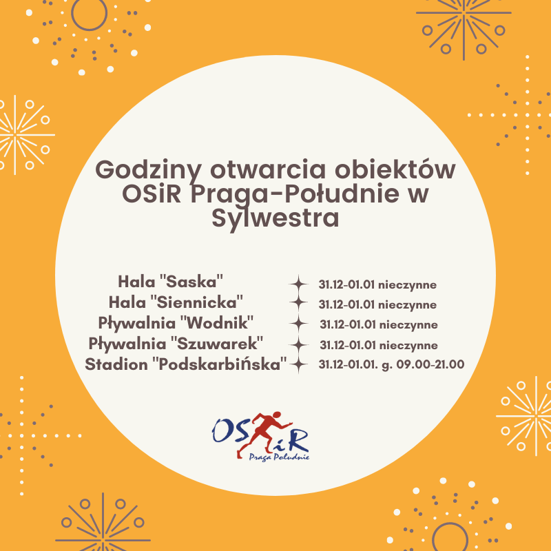 Informujemy o zasadach działania obiektów OSiR Praga-Południe w Sylwestra i Nowy Rok: